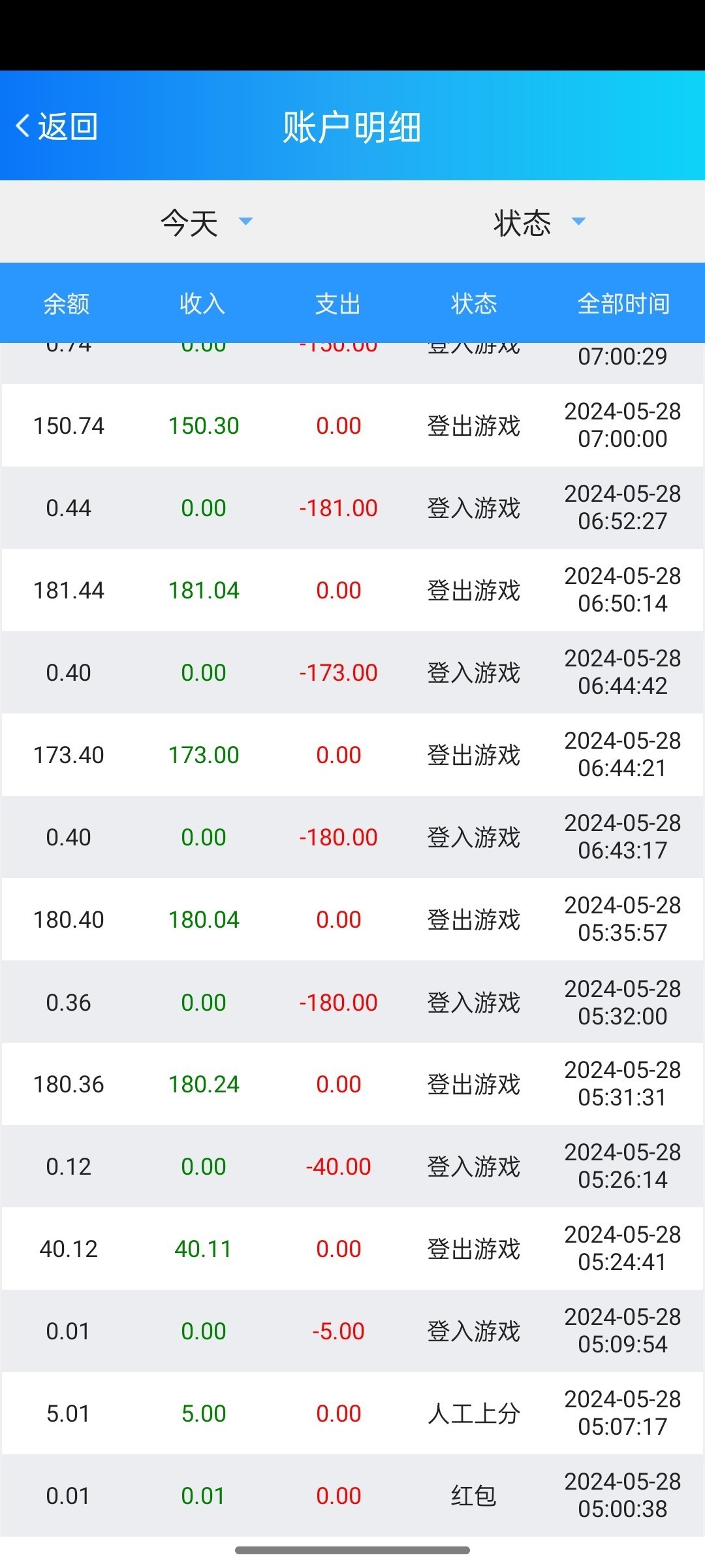 出款情况:自测