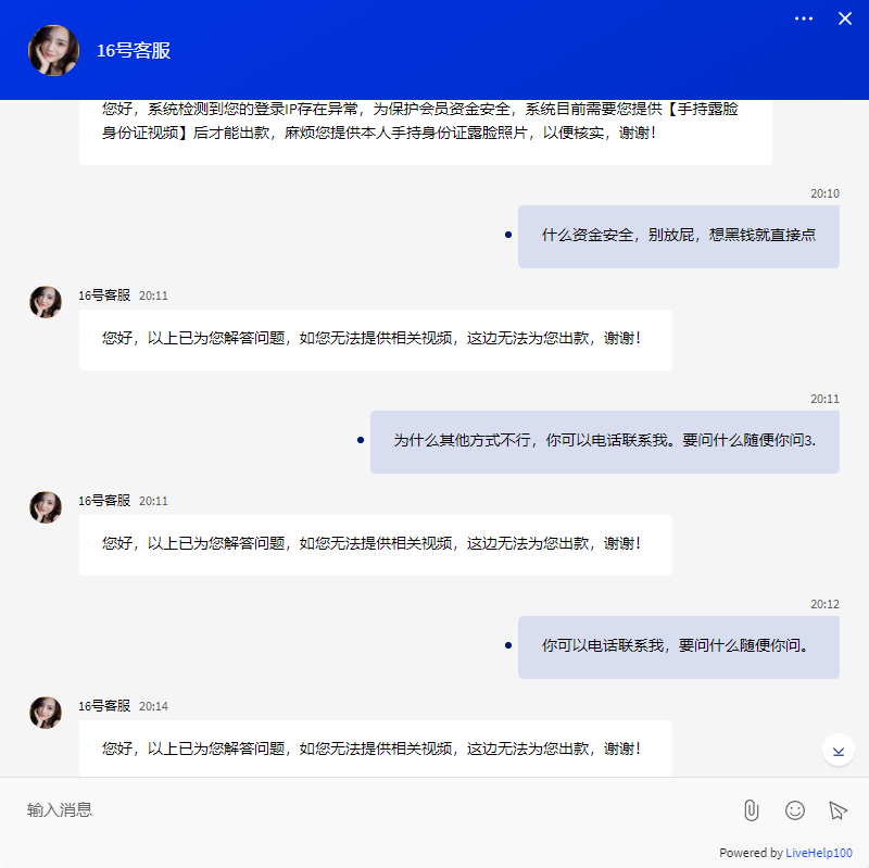 真他妈的黑,赢几十块不让出款,还要把300块本金黑掉。