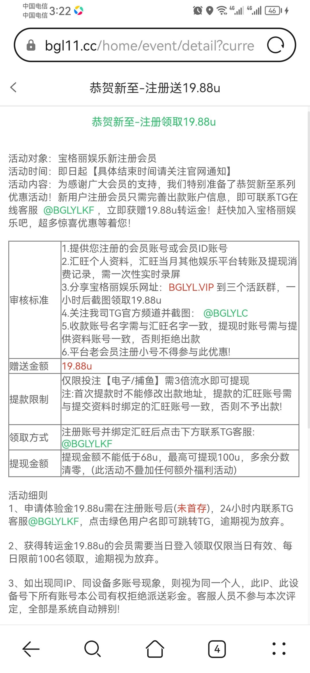 联系飞机彩金客服申请 没汇旺的可以录屏U地址 还需要分享三个群 http://bglyl.me
