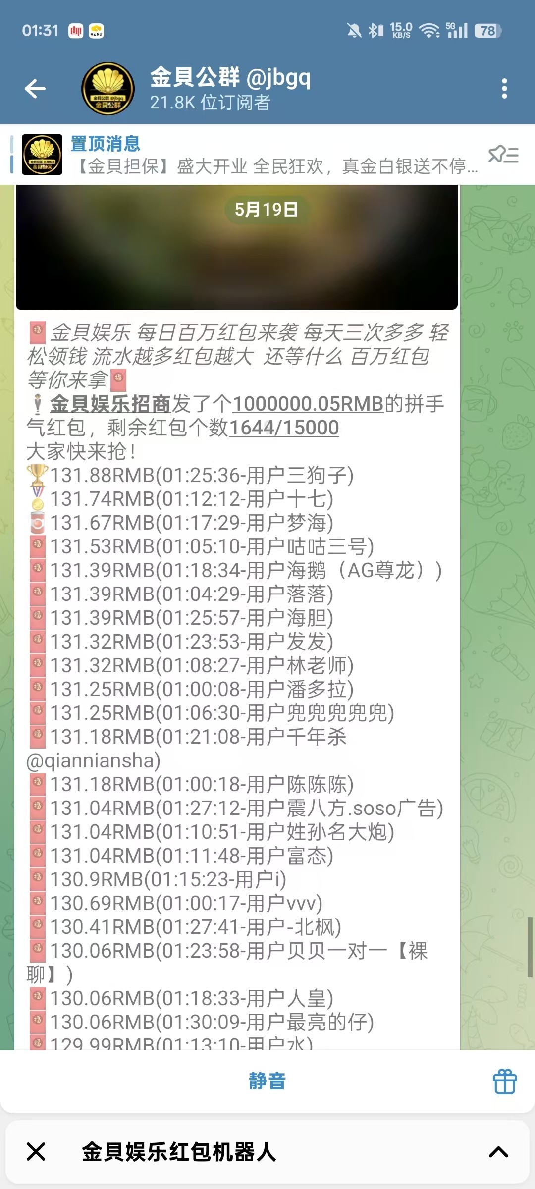 金币发了一百万人民币彩金,一万五千包,进度很慢,可能会持续几个小时才能抢完,人均一百,不要一个设备一个ip多号抢,出款查ip设备的,飞机频道 @jbgq ,还有一万三千包,老哥们快去吧