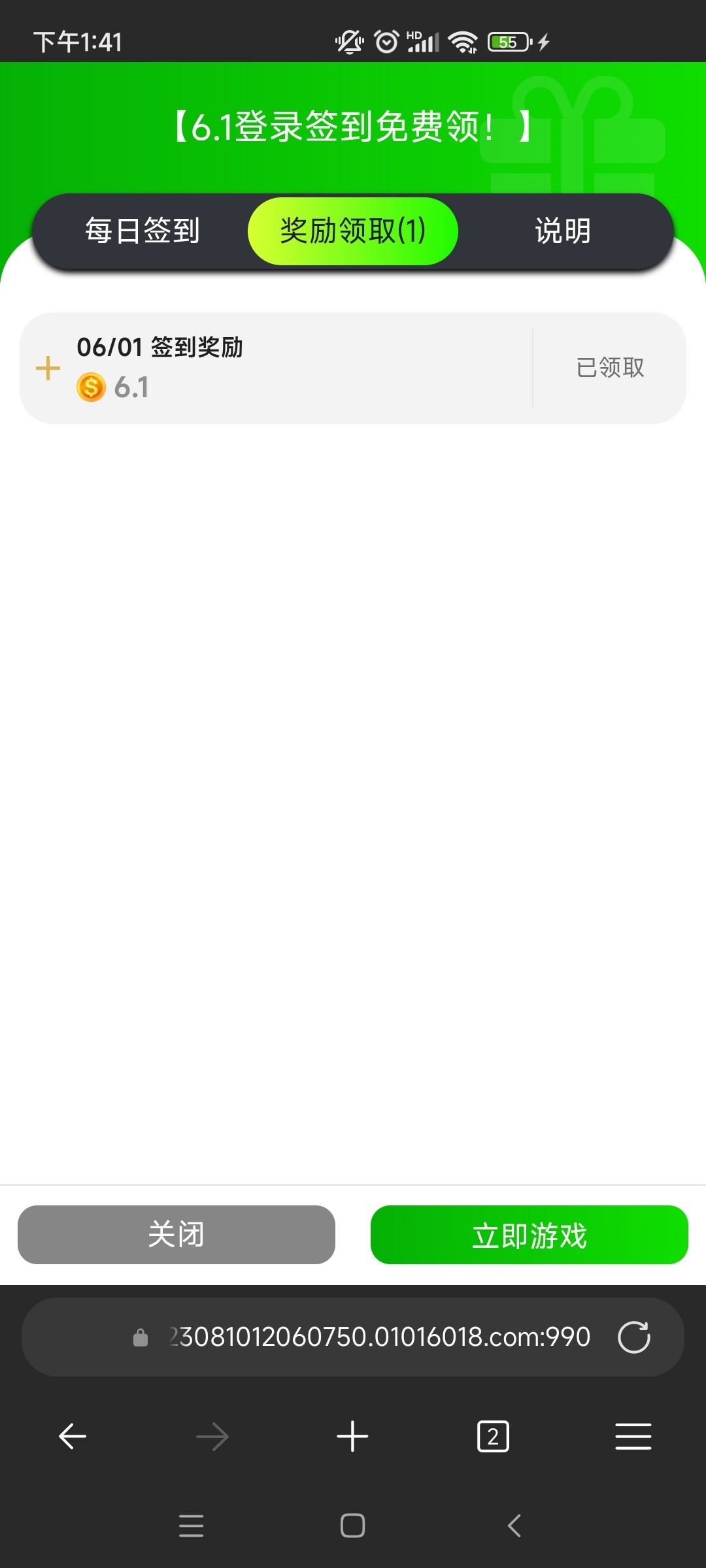 链接6008.cm,没有领取限制,点一下签到里面的六一签到就到账。