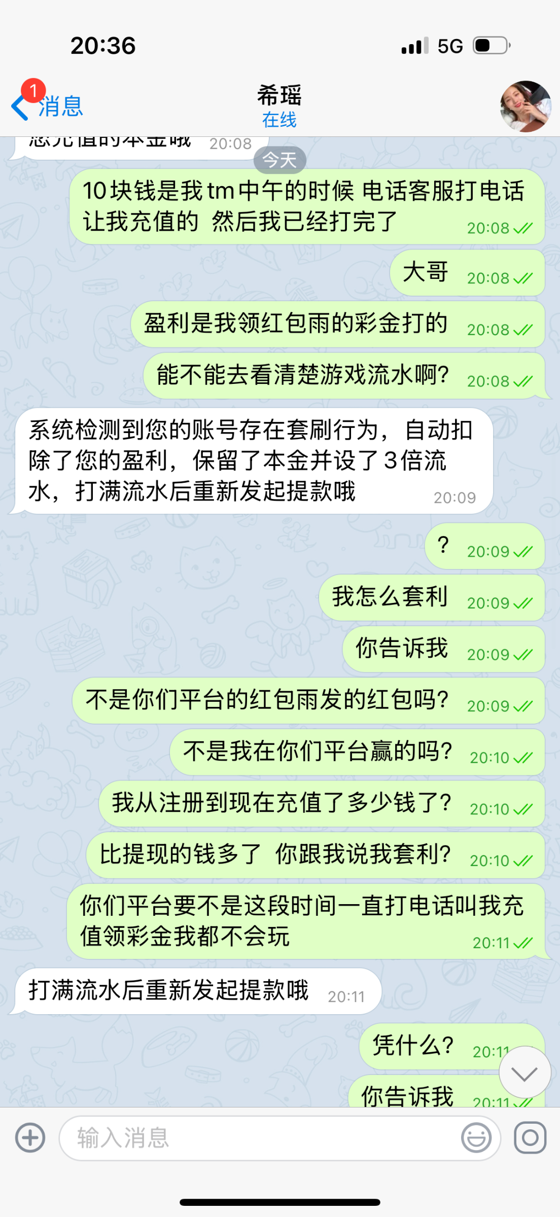 黑台一个  我这几天天天接到电话让我上号随意充值就可以领188  然后今天打电话给我我去充值了10块钱  没有领到  输了   今天下午我领了一个红包雨 4块钱   打到300提现  平台说我是套利  扣了款