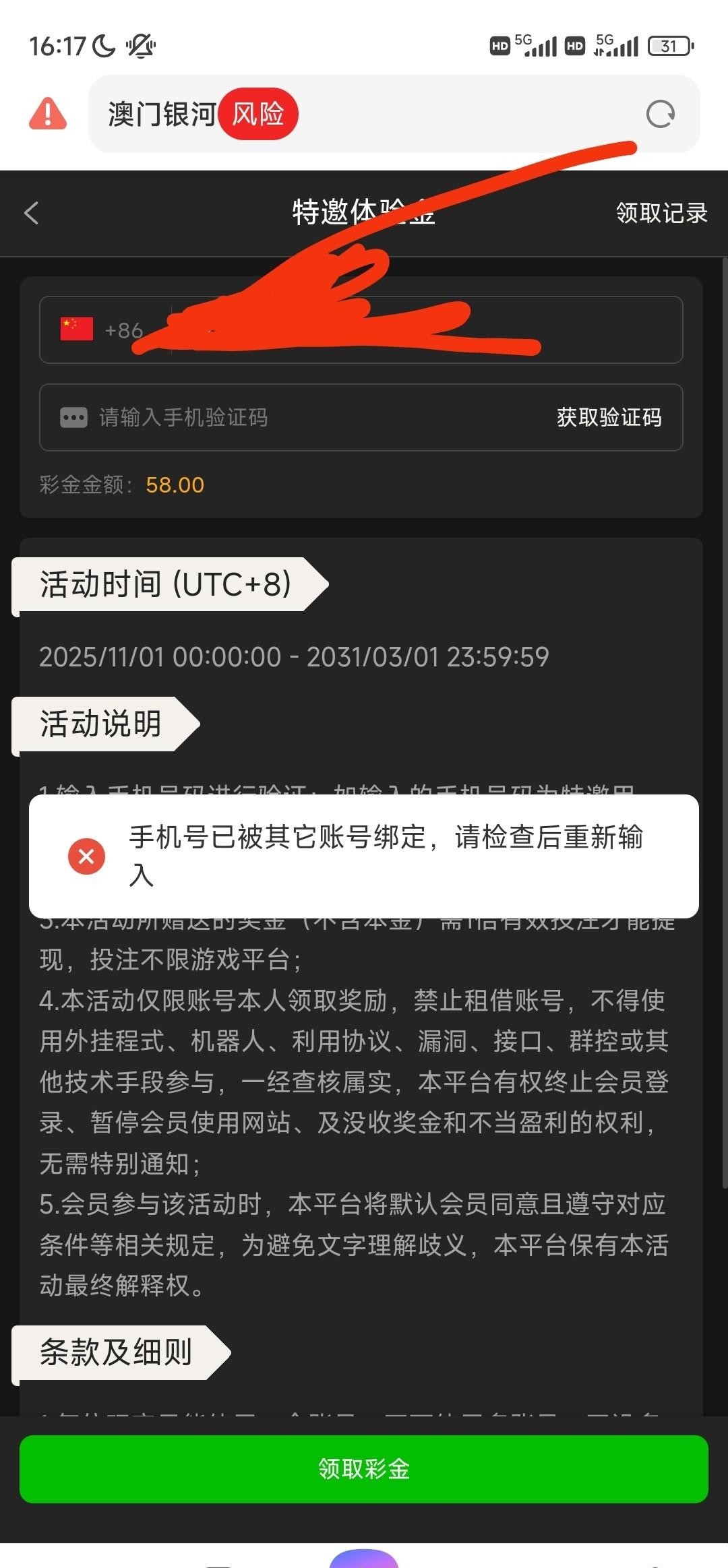 3016银河可以找客服申请,我两年的老号都申请到了注册彩金3016.com