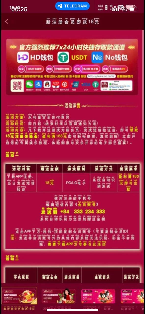 活动:下载注册绑定信息优惠活动自行发短信领取 彩金限制自行查看