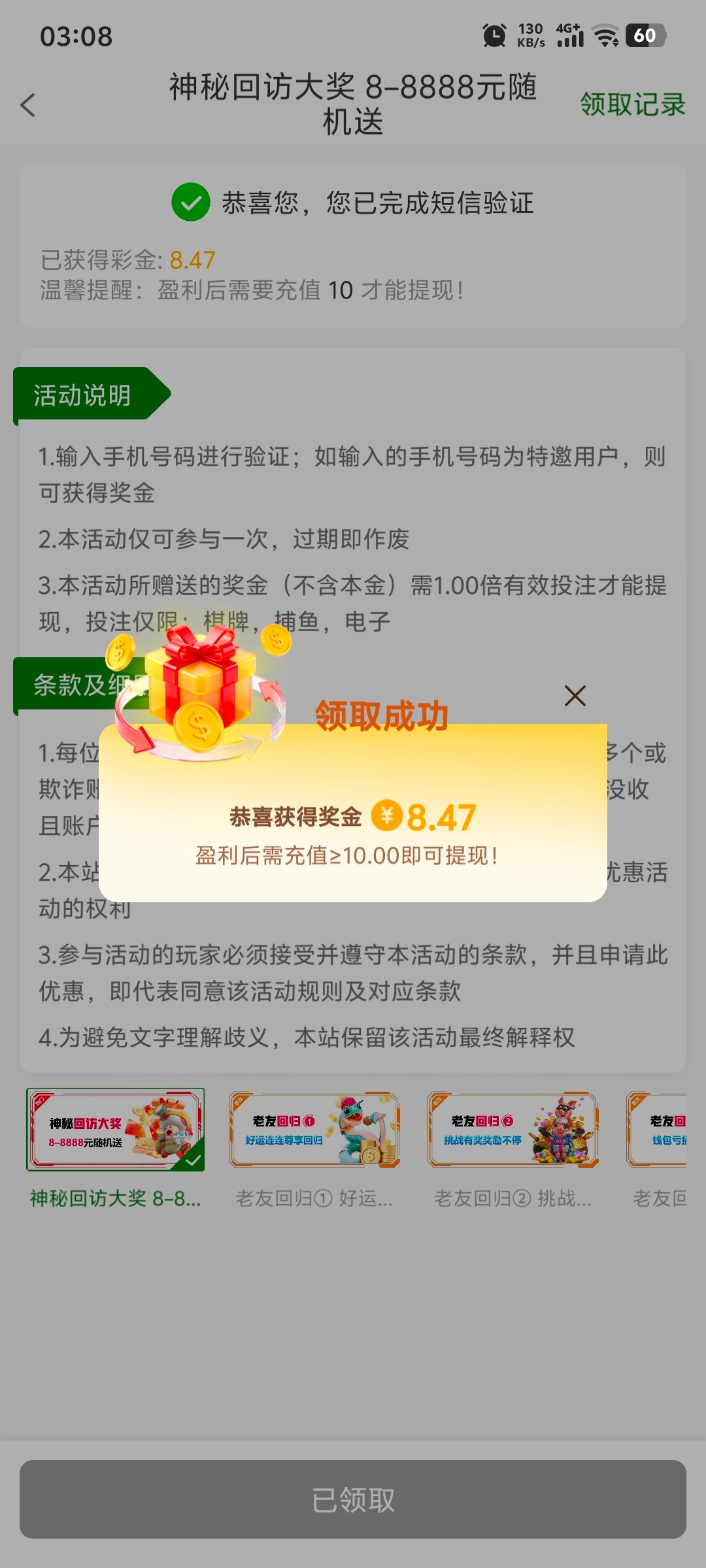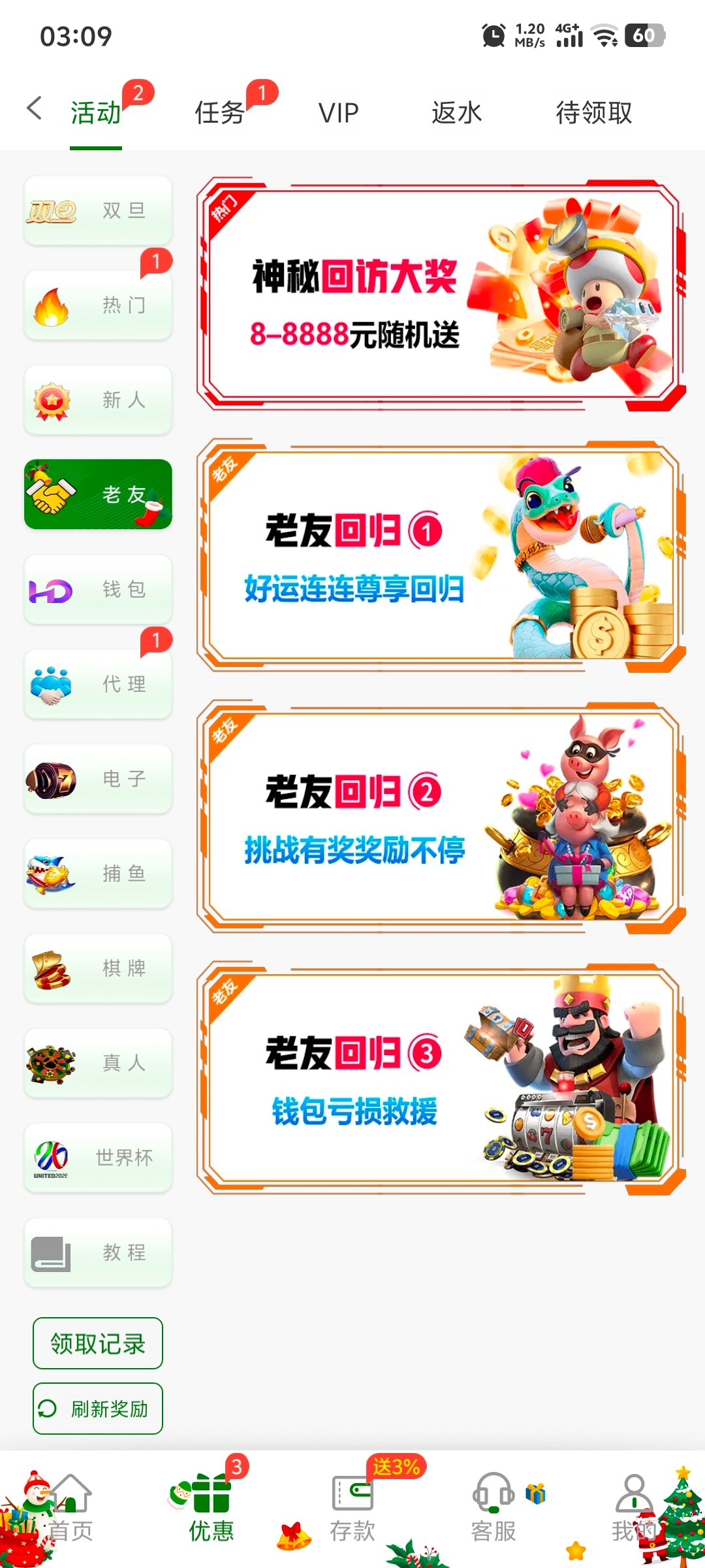优惠里面点老友第一个,之前玩过去试试