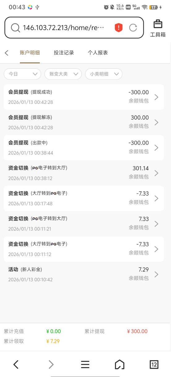有号的去看看 没有接到电话已经领过三次了(他这个回归活动过一个月左右会刷新一次应该是 这个号一分钱没有充值过。以前有一个号也是领了七块打出来100 当时要充值50才能解锁提现,不过这个号分逼没充七块麻将上300 提现2分钟到的,现在好像特邀彩金不需要充值就能提现了。反正这个台子我两个号领七块打出来都提现成功了 。反正现在不需要充值就能提现 大家也不用怕被黑 反正无成本