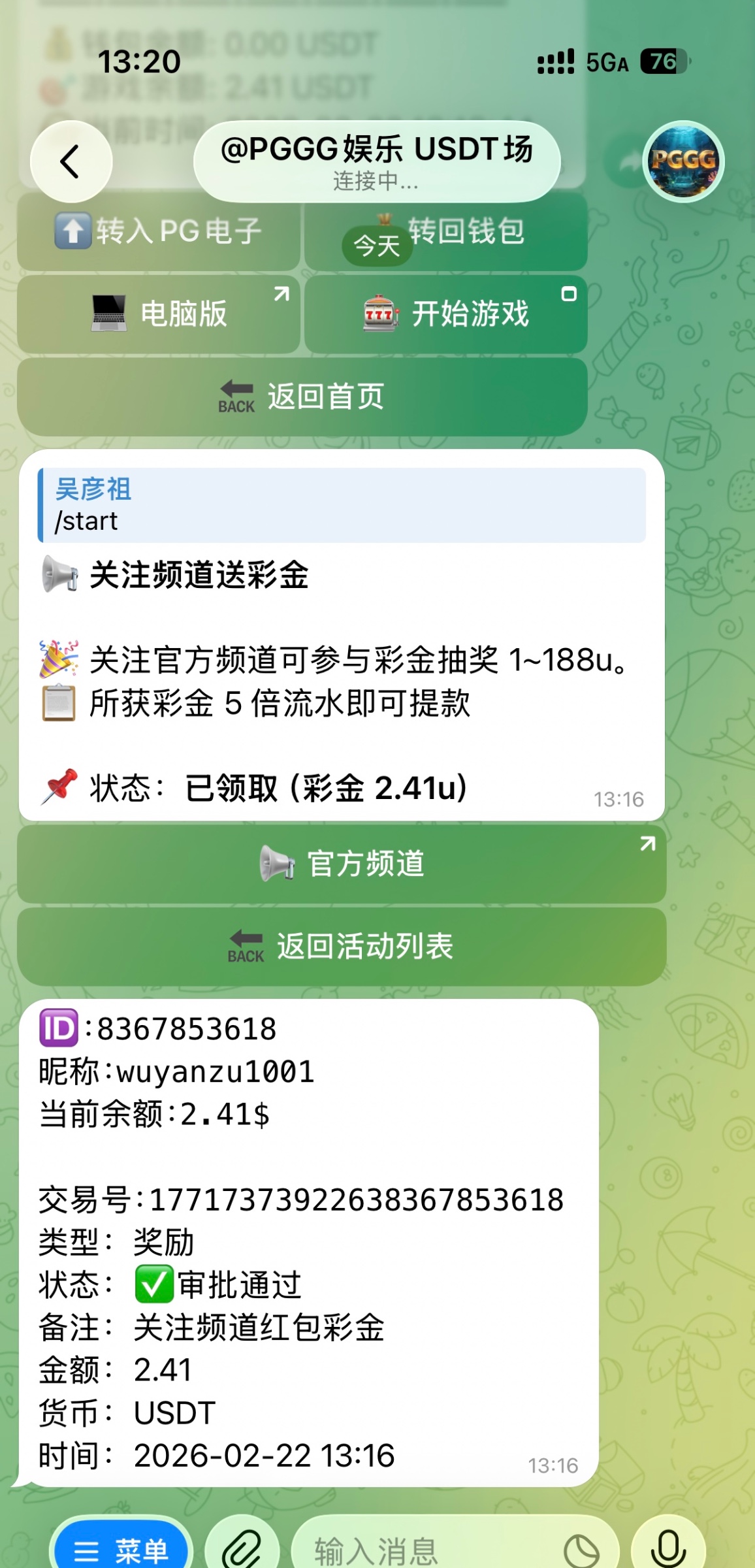 打开机器人关注频道领取,五倍流水,满10u提现https://t.me/pggg