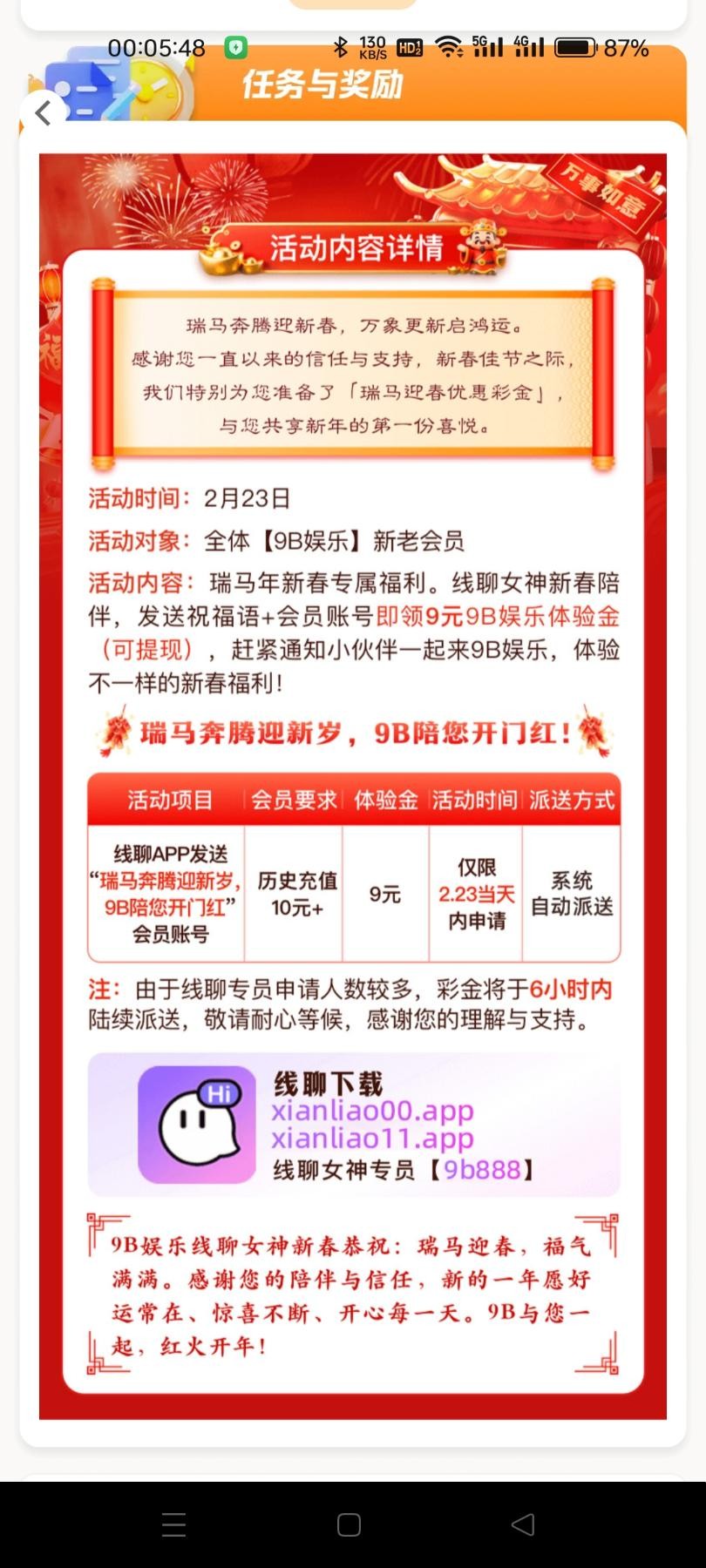 9b娱乐23号找线聊客服领9元彩金,必须历史充值10+以上才能领,一倍流水领到的老哥或者打出来的老哥反馈下。